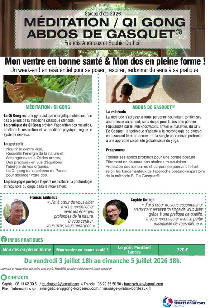 • Stage d’été en résidentiel « Mon ventre et mon dos en pleine forme !! »