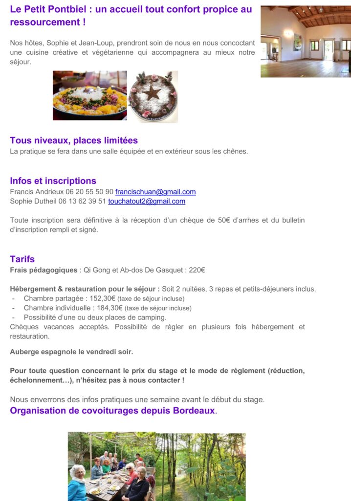 • Horaire et lieux des cours de Qi Gong, saison 2025-2026